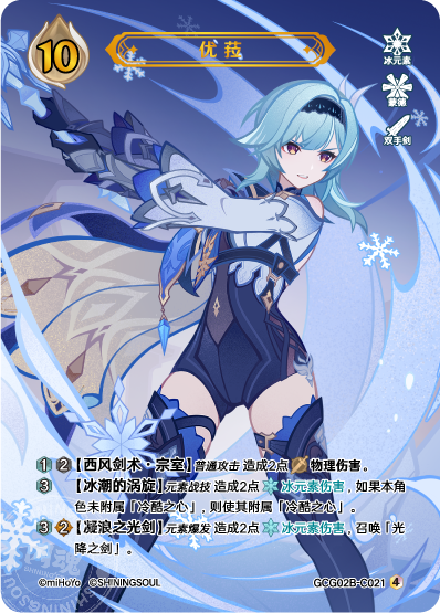 **[[Glacial Illumination]]** *Elemental Burst* Deals 2 Cryo DMG, summons Lightfall Sword.
